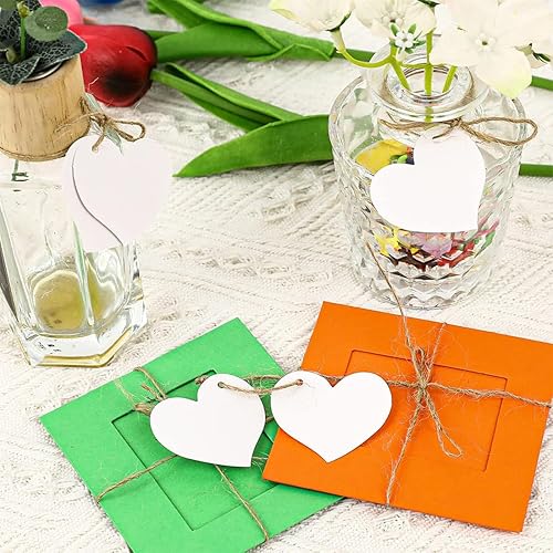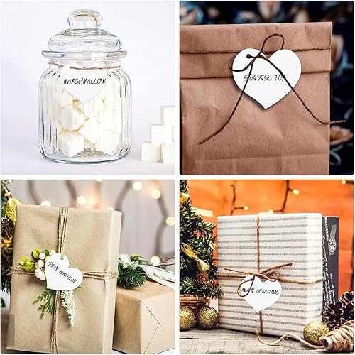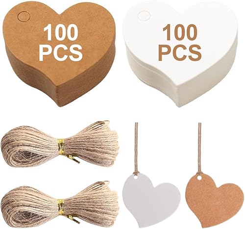 Étiquettes Cadeaux Marron avec Ficelle pour Cadeaux, Lot de 200 Étiquettes de Bagages en Papier Kraft, Étiquettes Vierges en Forme de Cœur pour Cadeaux