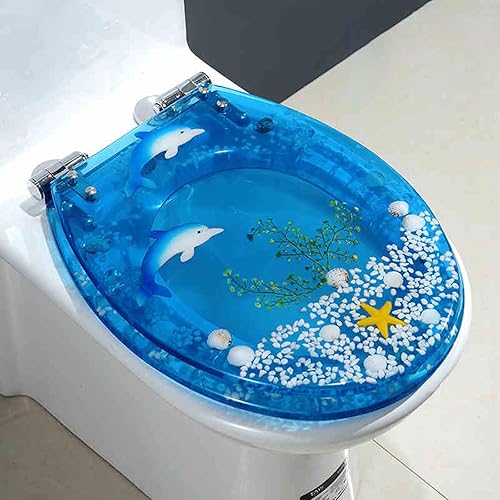 Abattant WC Robuste Effet 3D, abattant WC en résine Transparente, abattant WC à dégagement Rapide, Bord Lisse, Descente Lente et silencieuse, adapté aux Toilettes à Immersion.
