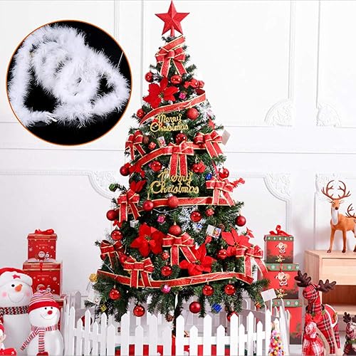 Lot de 20 guirlandes de plumes pour sapin de Noël, 2 m, guirlande moelleuse, ruban Boa, guirlande blanche avec plumes, guirlande de sapin de Noël, guirlande de Noël, décoration de fête, mariage