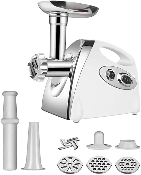 Hachoir a Viande Electrique, 2800W, 3 Plaques de Coupe, avec Attachement Kubbe et Tube de Farce à Saucisse, Hachoir à Viande pour la Cuisine Domestique et l'Usage Commercial (Blanc)
