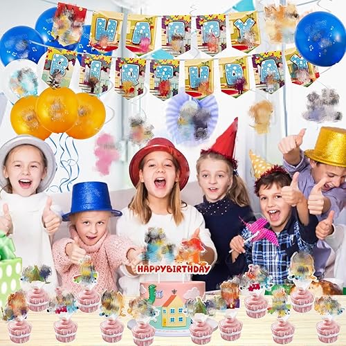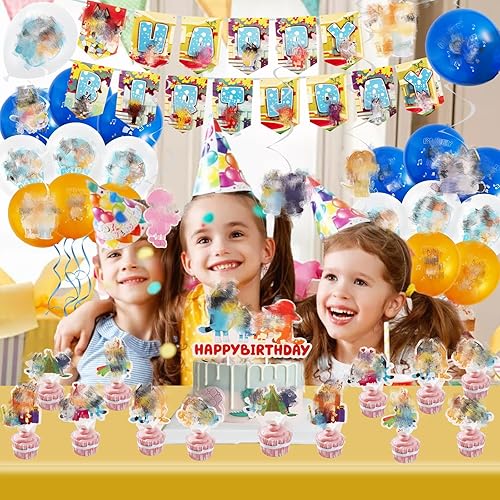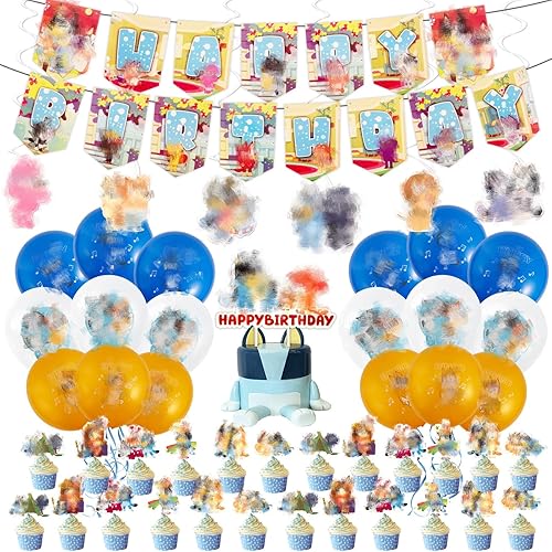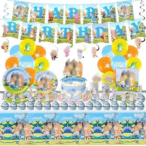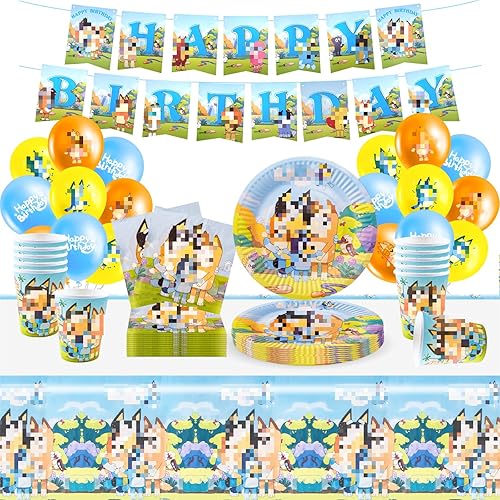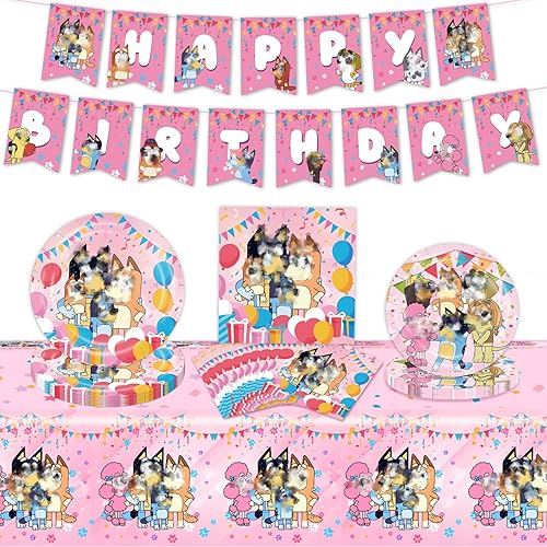 42PCS Decoration Anniversaire, Chien Rose Deco Anniversaire pour Enfants Thème Anniversaire Vaisselle 10 Personnes, Ballons Anniversaire Assiettes Bannière Serviettes de Table Nappe