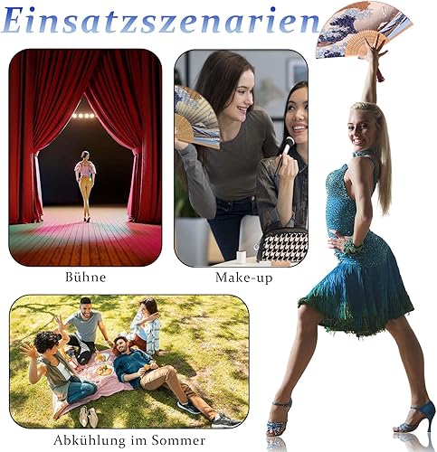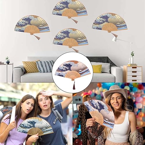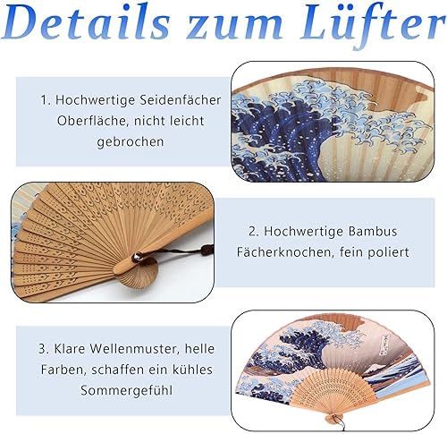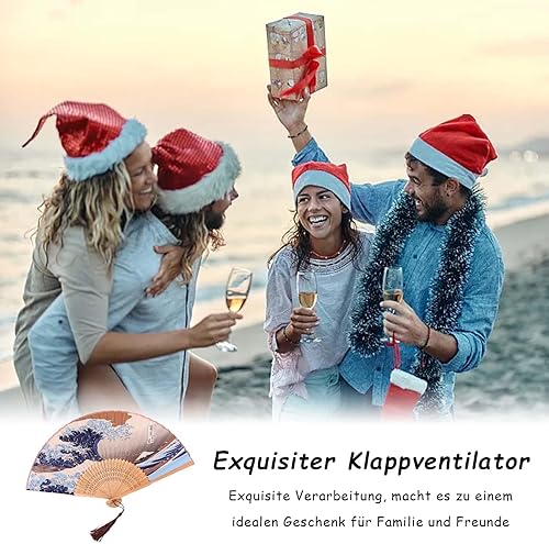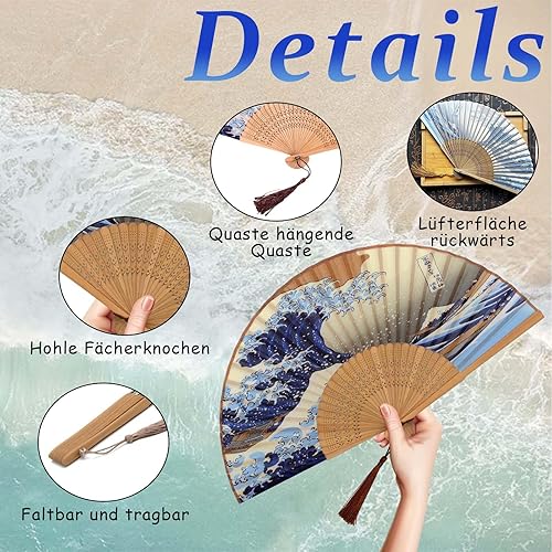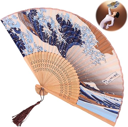 Crrynuo Kanagawa Éventail japonais pliable en forme de vague de mer, style rétro chinois/japonais pour mariage, fête ou cadeau