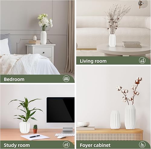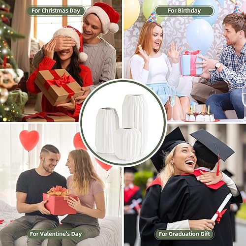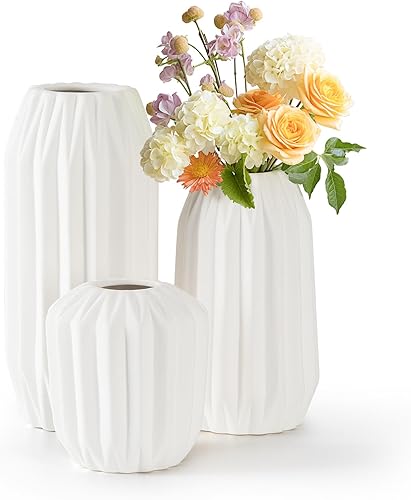 Cinnani Vase Jeu de 3, Set de Vases en Céramique Blanche