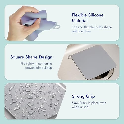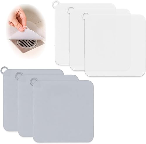 6 Pièces Silicone Drain Stoppers, Bouchon Douche Anti Odeur 20x20 cm, Bouchon Douche Anti Odeur, Anti Insectes, Bouchon Vidange Universel, Bonde Douche Cuisine et Salle de Bain, Gris et Blanc