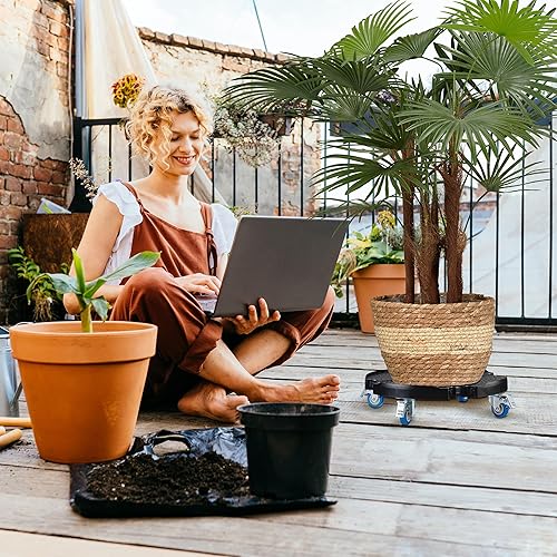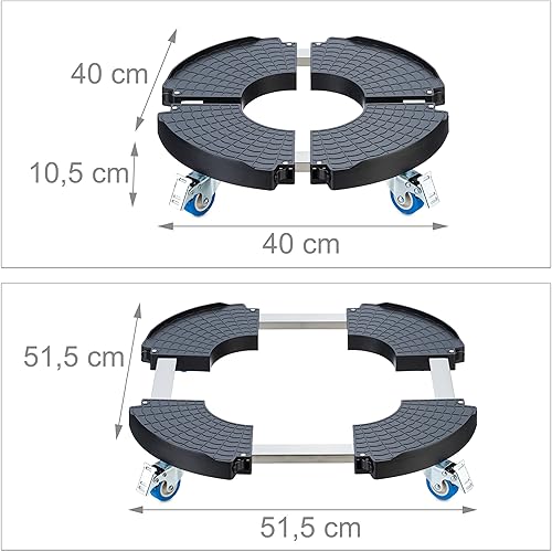 Relaxdays Support Plantes, Extensible, diamètre 40-57,5 cm, Plastique, Max. 200 kg, intérieur & extérieur, Gris foncé