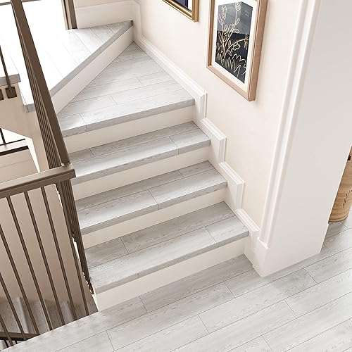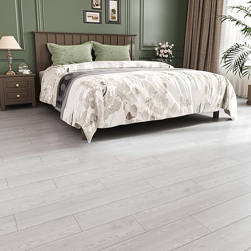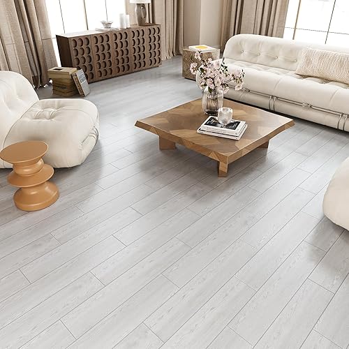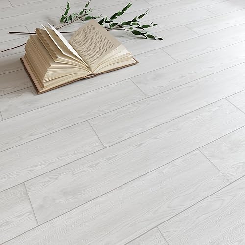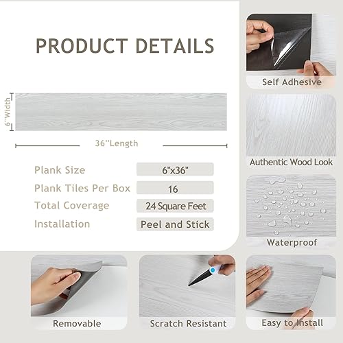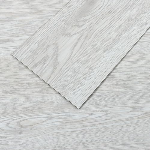 VEELIKE Carrelage Adhesif Sol Imitation Bois Gris Blanc Dalle PVC Adhesive Sol Bois Chambre Carrelage Salle de Bain Sol PVC Adhesif Cuisine Revetement Sol PVC Épaissir 1.8mm 90cm×15cm 32 Pièces