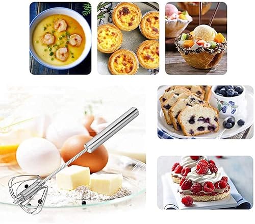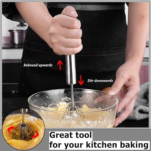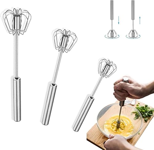 Tuofang 3 Pcs Fouet Semi-Automatique, Acier Inoxydable Batteur à Oeufs, Manuel Fouet De Cuisine, Fouet à Pousser, Mélangeur Rotatif, à œufs, pour la Cuisson, Le mélange, l'agitation