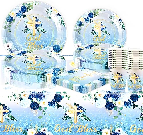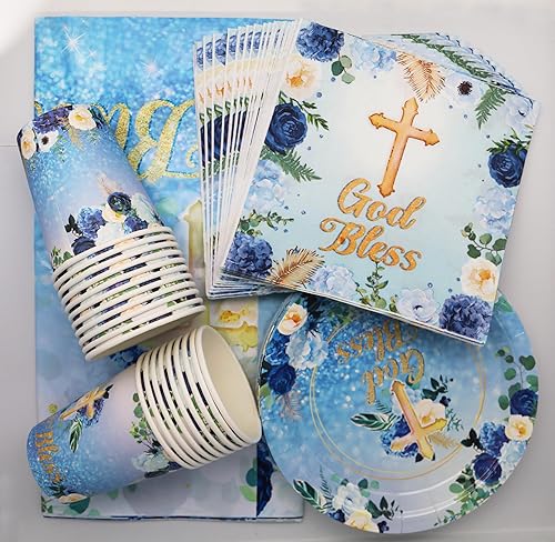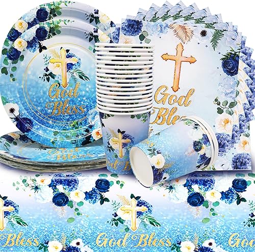 Vaisselle de fête pour communion, décoration de table en eucalyptus, décoration de table pour baptême, confirmation, communion, garçon et fille (20 invités)