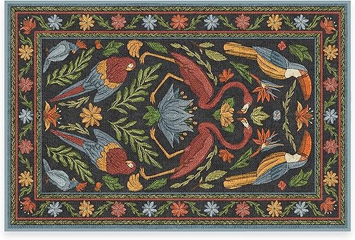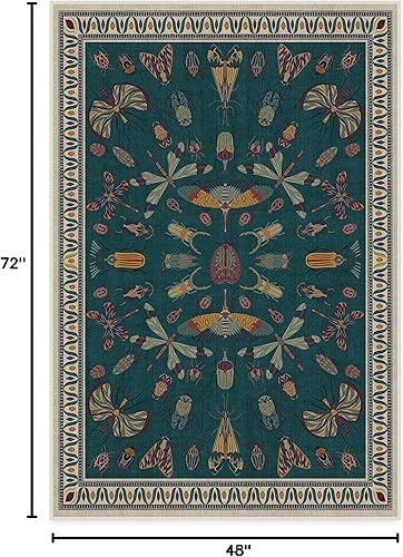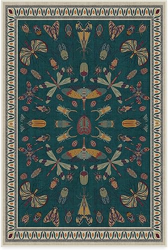 Ruggable Tapis moderne lavable de 61 x 91 cm, multicolore flutterby, pour salon, chambre à coucher, cuisine, bureau, salle de classe avec coussinet antidérapant, vert iris, apfel iris