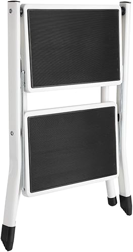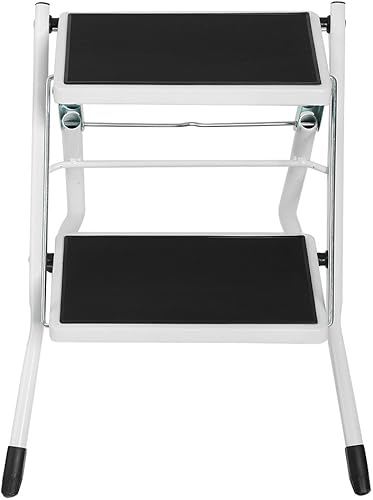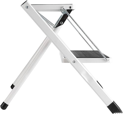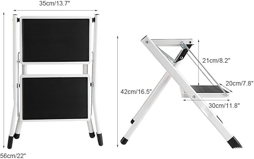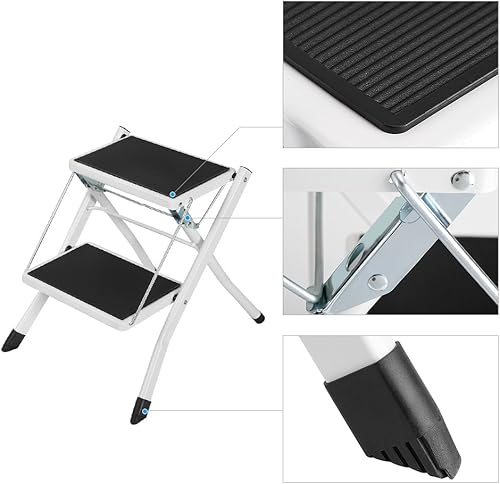 Escabeau avec 2 marches, échelle pliable multifonction domestique, avec tapis antidérapant, échelle pliable, 2 marches, acier, fer, chaque couche de charge 120 kg, 42 x 48 x 41,5 cm