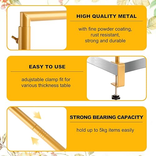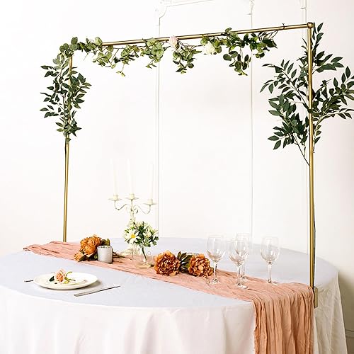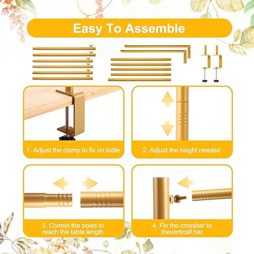 LOLYSIC Support de table réglable en métal doré avec pince, barre de présentation de ballons, arche de fleurs pour fête d'anniversaire, mariage, Noël (longueur 120-184 cm, hauteur 141 cm)