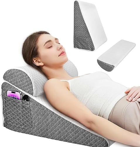 Coussin incliné pour lit Oreiller Triangle pour l'apnée du Sommeil,Coussin de Lecture en Mousse à Mémoire de Forme,Coussin Triangulaire Multifonction pour Reflux Acide l'élévation des Jambes