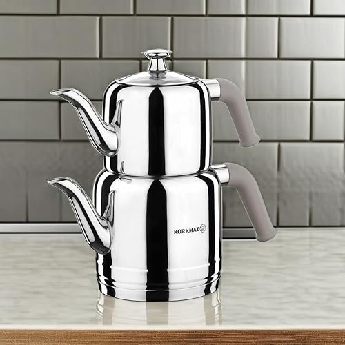 Korkmaz Riva A189-02 Ensemble théière et théière en acier inoxydable 3 l Compatible induction Thé turc