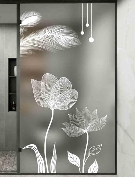 Film Opaque Vitrage Motif De Fleurs Blanches Stickers Fenetre Electrostatique Film Vitre Anti Regard Bureaux Salle de Bain Cuisine Brise Vue Fenetre Opaque 40x120 cm