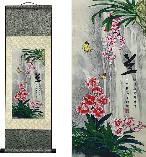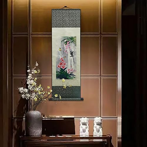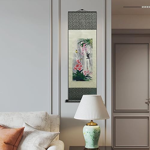 Peintures en Soie Murales Décoration Murale Asiatiques 4 Fleurs D'hommes Justes - Prune Orchidée Bambou Chrysanthème - Orchidée Belle Chinoise Défilement Peinture Décoration Orientale (94 x 30cm)