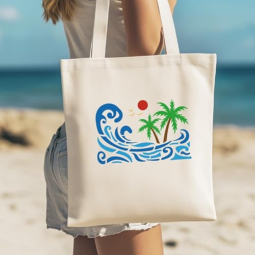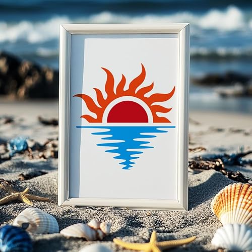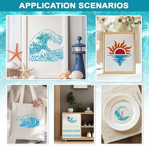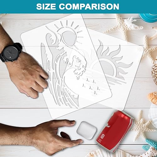FINGERINSPIRE 12Pcs Pochoir en Forme de Vague de Soleil pour Peinture Au Pinceau 2 Tailles Motif de Lever de Soleil de Coucher de Soleil de Vague de Mer Creuse de Cocotiers Pet Motif Thème Nature