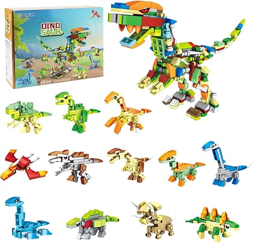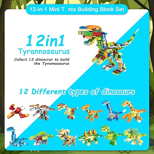 Lot de 12 mini blocs de construction animaux - Jouet de construction - Jouet d'anniversaire - Cadeau de fête - Jouet de Pâques - Cadeau d'anniversaire - Cadeau de fête (Tyrannosaurus rex)