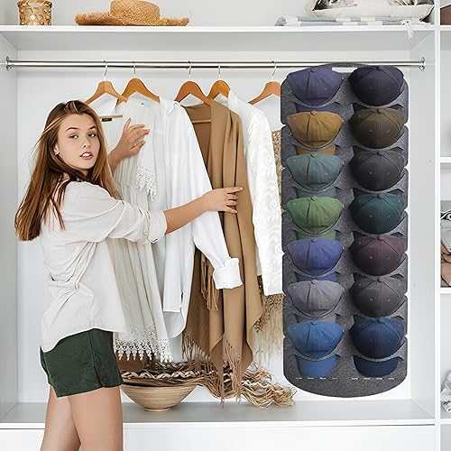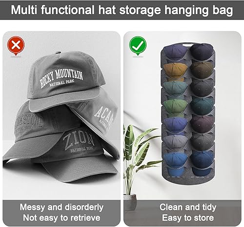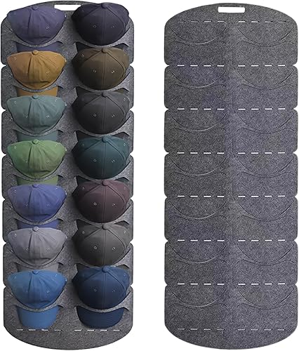 Lunaanda Support mural pour casquettes de baseball - Support mural pliable pour casquettes de baseball - Organisateur de chapeau pour le rangement/présentation des casquettes de baseball (14 poches)