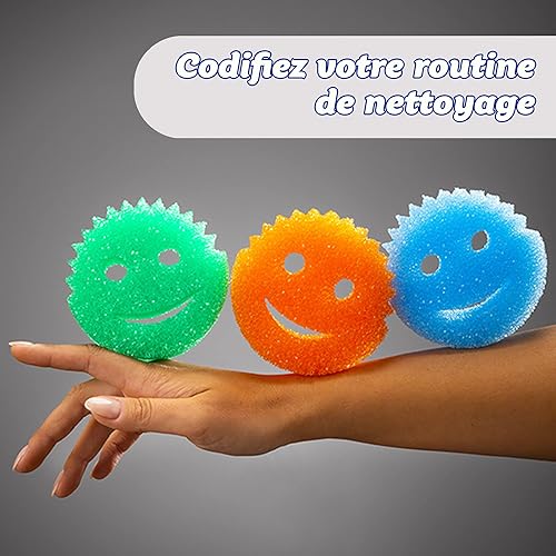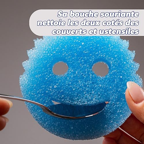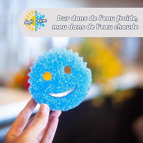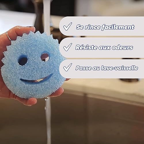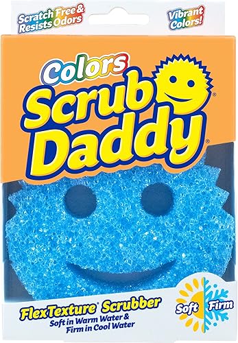 Scrub Daddy Color Eponge Smiley Anti-Rayures, Eponge Vaisselle Lavable Antibactérienne et Réutilisable, Eponges Vaisselles pour Cuisine et Salle de Bain, Éponge à Récurer Flextexture - Bleu