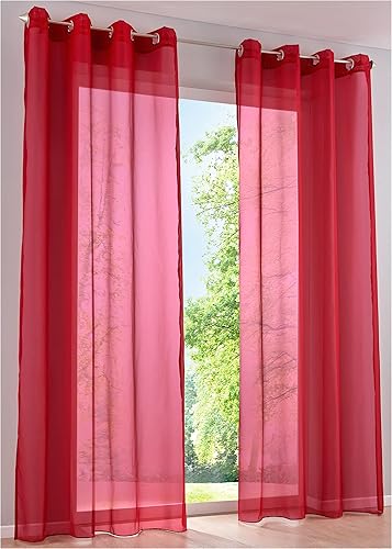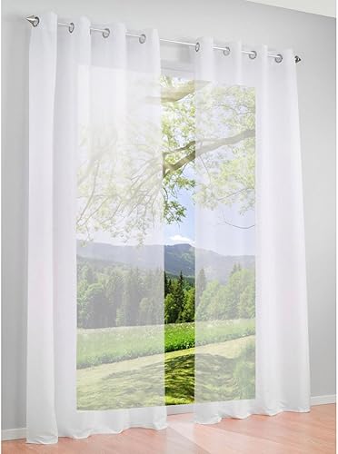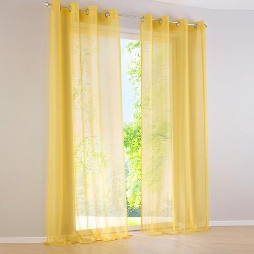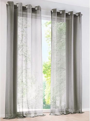 BAILEY JO Lot de 2 Rideaux Voilages Transparents à Oeillets Couleur Unie Paon Bleu LxH/140x245CM en Polyester Décoration pour Salon Chambre