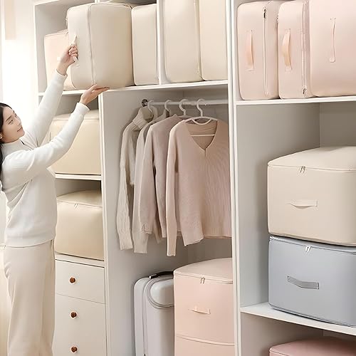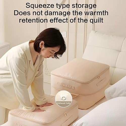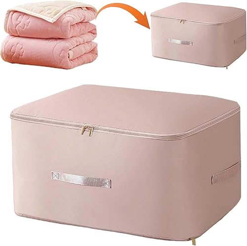 SHUOHONG Sac Compression Voyage, 54x42x60 CM Organisateur Auto Compression avec Poignée Renforcée, Sac Rangement Vetement Pliables, Sac Rangement Couette pour Literie Couvertures Jouets (Rose)