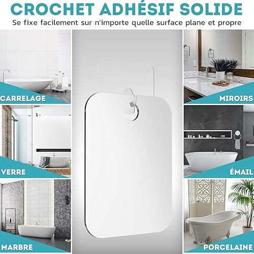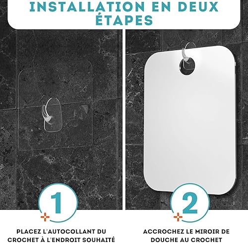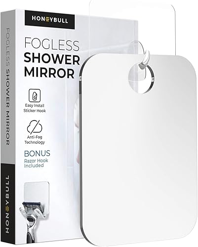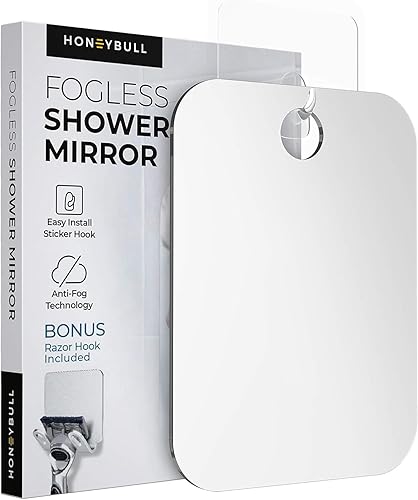 HONEYBULL Miroir de Salle de Bain Anti Buée - Miroir de Rasage pour Homme Femme avec Support Rasoirs Miroirs Maquillage sans Cadre avec Crochet Adhésif Accessoire Douche de Bain (Petit)