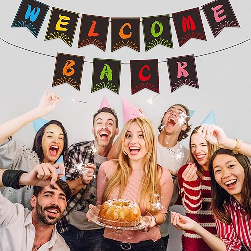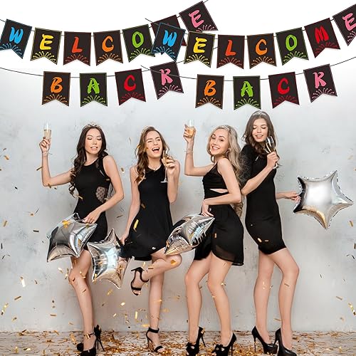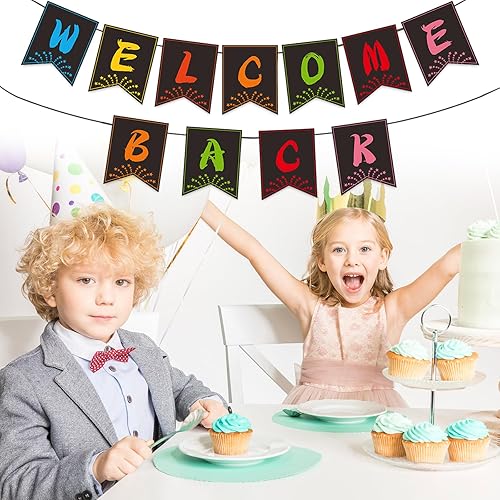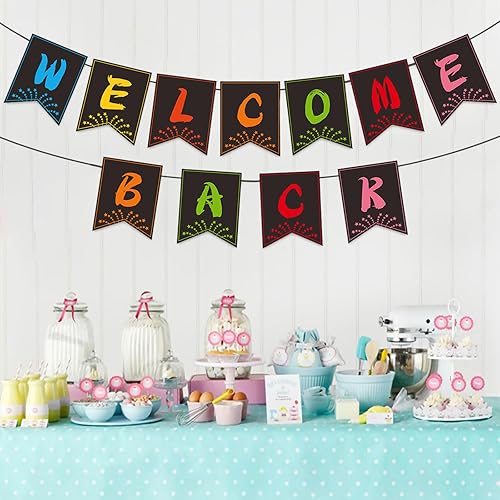 Welcome Back Guirlande bannière de bienvenue avec 11 drapeaux de 5 m de corde de jute Bannière de bienvenue pour la rentrée scolaire, famille, décoration de fête, décoration d'anniversaire