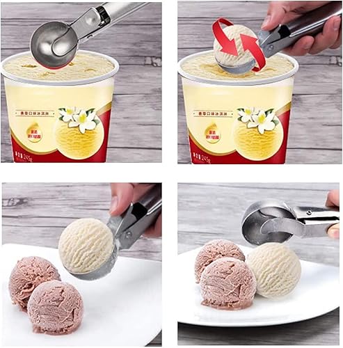 Cuillère à Glace Réutilisable,Cuillère à Crème Glacée Avec éjecteur Boules Cuillère à Crème Glacée Cuillère à Fruits Acier Inoxydable pour Glace Fruit