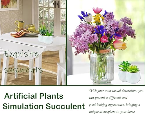 MukMlon Plante Artificielle,Petite Simulation Succulent,Fausse céramique Blanche,Bureau, décoration intérieure(4pcs)
