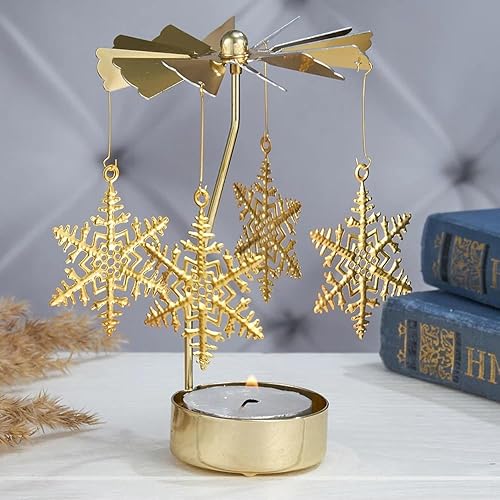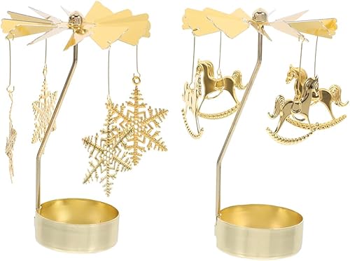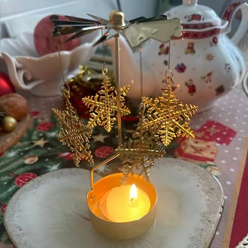 Bougeoir Rotatif, 2 Pièces Porte Bougie Carrousel et Flocons, Décoration de Table Noël, Photophore Bougie pour Halloween Noël Mariage Anniversaire Décoration (Bougies Diamètre) 4,6cm