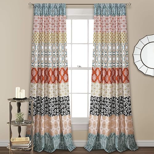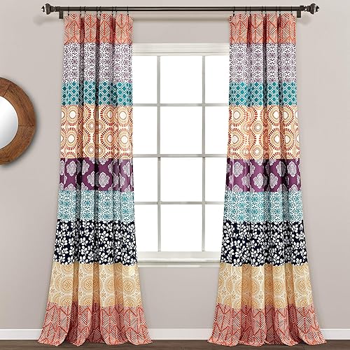 Lush Decor Paire de Rideaux de fenêtre à Rayures bohèmes, Fuchsia et Orange, 213,4 x 132,1 cm (L x l)