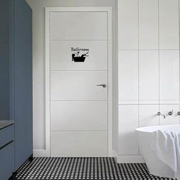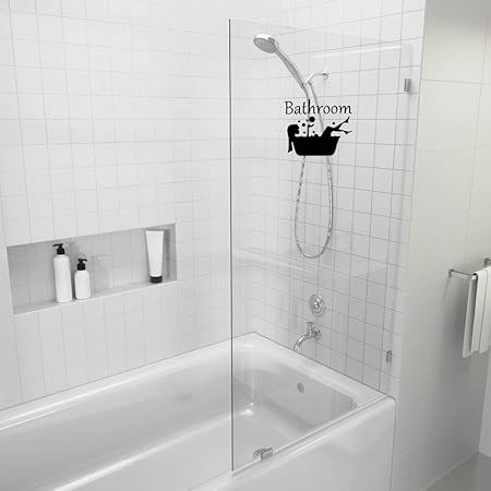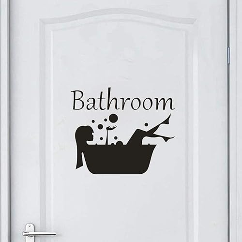 Froomer Autocollant de salle de bain | Autocollant de porte de salle de bain | Autocollant mural amovible en vinyle pour salle de bain | Fille dans la baignoire | Décoration murale pour porte de salle