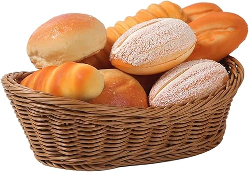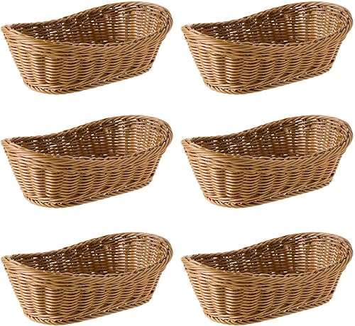 VENEKA Lot de 6 paniers à pain ovales en osier tissé, 25,4 cm, panier de rangement pour nourriture, fruits, cosmétiques, table et salle de bain