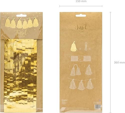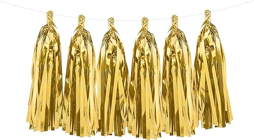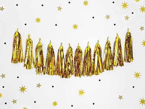 Guirlande de Pompons en Papier de Soie à Suspendre pour événement, Anniversaire, Mariage, fête prénatale, Saint-Valentin - 30 cm x 1,5 m - Doré