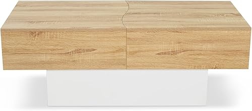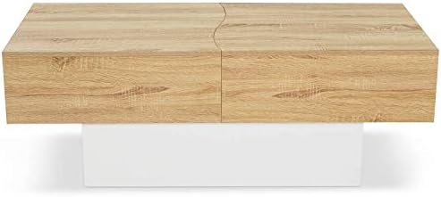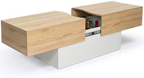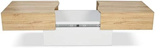 IDMarket - Table Basse coulissante rectangulaire Marta Bois Blanc et Imitation hêtre