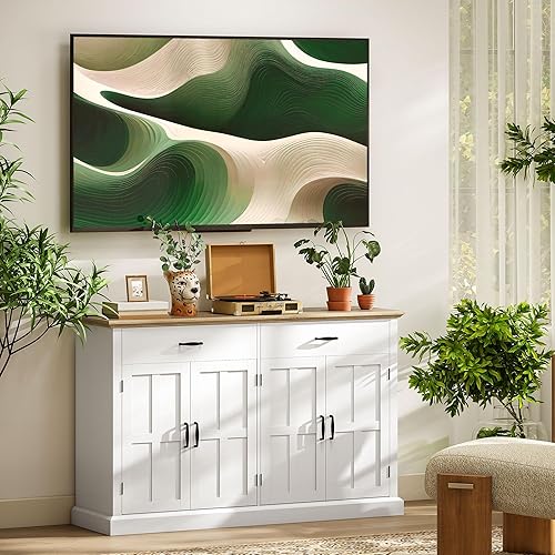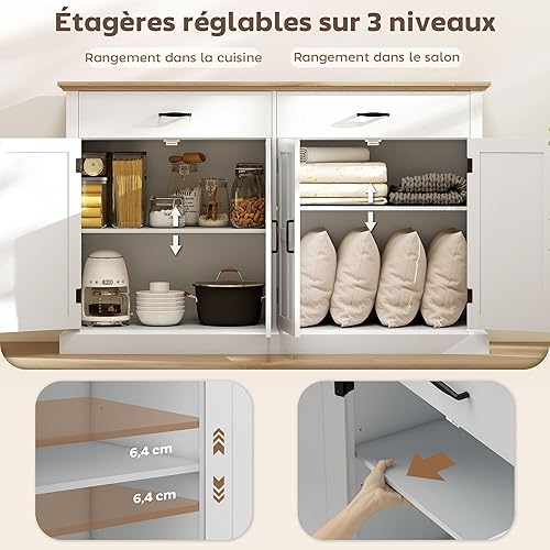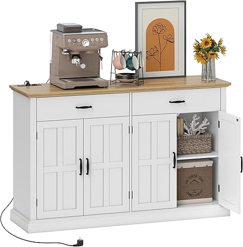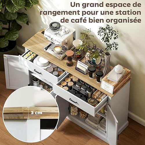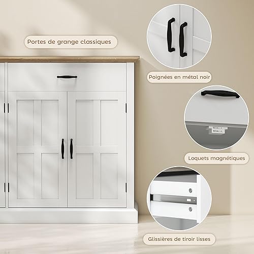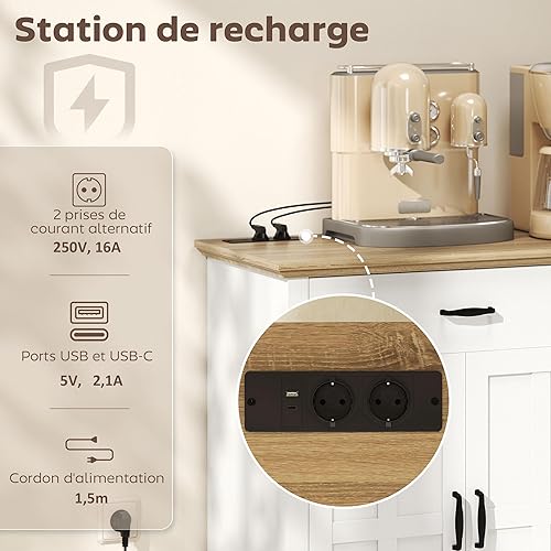 HOMCOM Buffet avec Port USB et multiprise, Meuble de Rangement avec 2 placards à Portes de Grange, 2 tiroirs et étagères réglables, Buffet Salle à Manger et Salon, 140 x 40 x 91,5 cm, Blanc