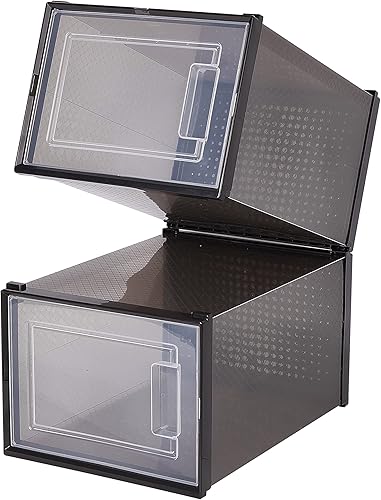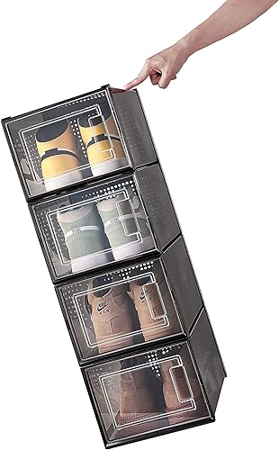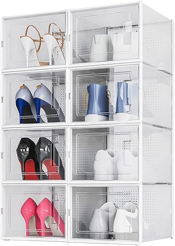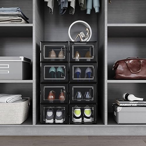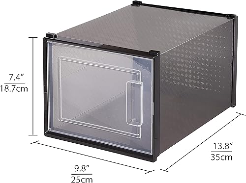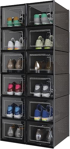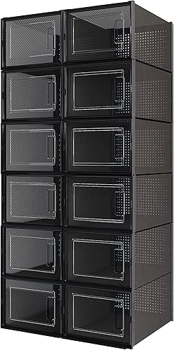 Meerveil Lot de 12 Boîtes à Chaussures Empilable, Rangement Boite Chaussure en Plastique avec Porte, 35 x 25 x 18.7 cm, pour Talons Hauts Pointure Jusqu’à 44 EU/9.5 UK, Transparente
