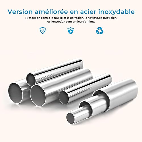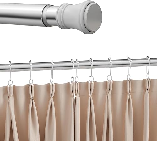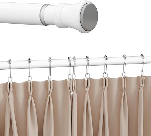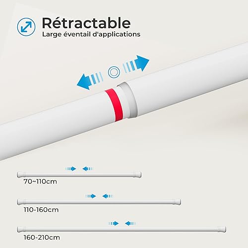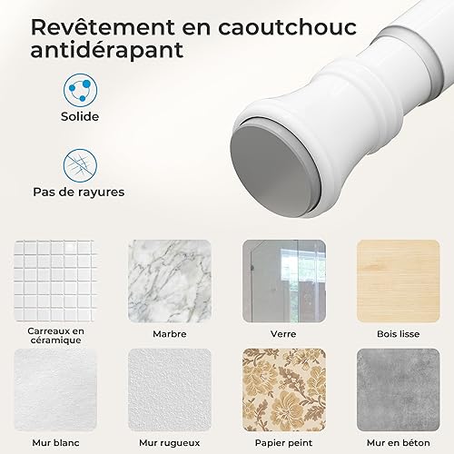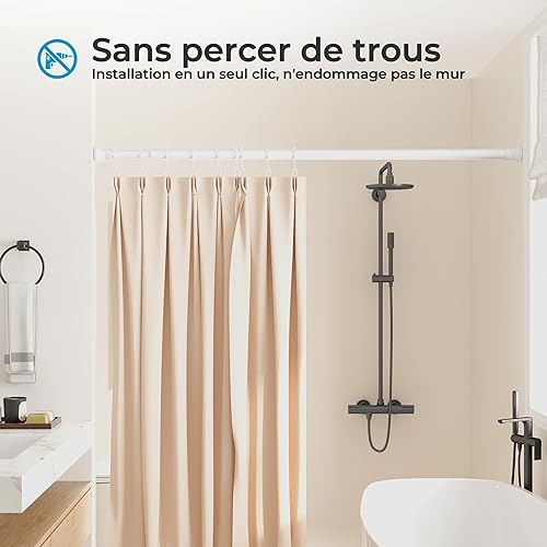 Heilmetz Tringle rideau sans percage,extensible,110-160cm,tringle rideau douche, avec 12 anneaux pour rideau de douche, autobloquante, antidérapant, barre de rideau de douche (Blanc)