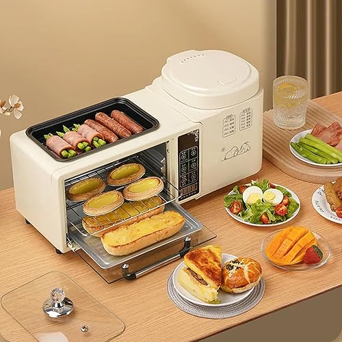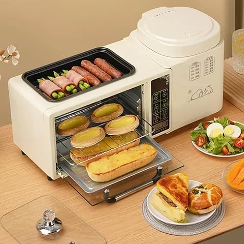 Station de petit-déjeuner 4 en 1, machine de petit-déjeuner intelligente avec four à 2 couches, cuiseur vapeur électrique de 1 L et poêle à frire électrique, contrôle indépendant de la température
