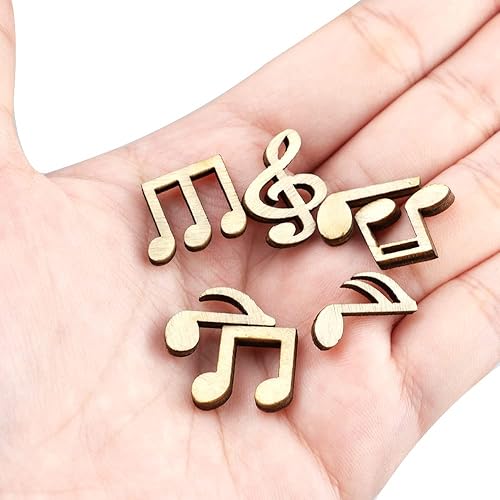 oupados 200 Pièces Note de Musique Copeaux Embellissements Tranches en Bois Mixte Tranches de Bois Différentes Formes de Tranches de Bois pour Décorations de Mariage Bricolage Artisanat Décoration