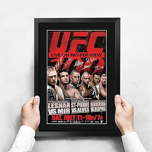 HWC Trading FR A3 UFC 100 Brock Lesnar Frank Mir Georges Cadeaux Photo autographe signée imprimée pour les fans de MMA UFC - A3 Encadré