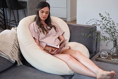 Pharmedoc Coussin de Grossesse (145 x 76 cm) - Natural en Coton Bio, Coussin Allaitement en Forme de C, Oreiller de Grossesse & Soutien de Maternité - Coussin Femme Enceinte