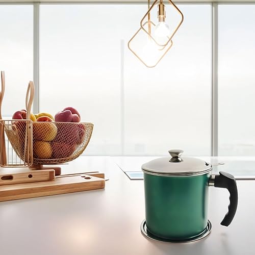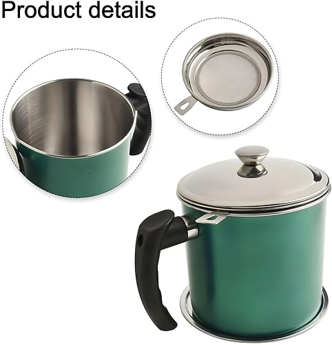 Récipient à graisse multifonction en acier inoxydable de 3 L avec filtre en maille pour le stockage de l'huile (vert)