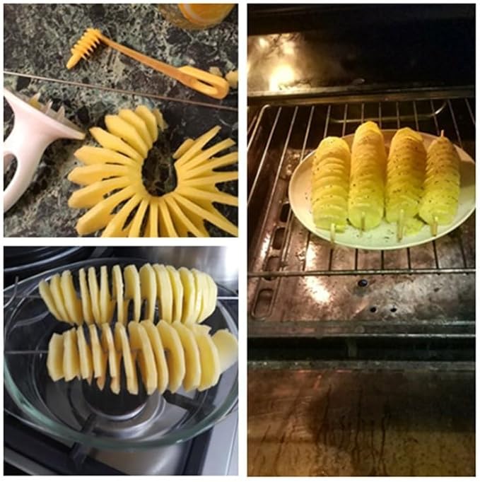 Thapncow Tour de Pomme de Terre Coupeur, Coupe Pomme de Terre, Coupe Légumes Spirale, pour Barbecue, Cuisine, Convient, aux Fruits, Concombres ou Carottes, Acier Inoxydable Coupe Pommes de Terre