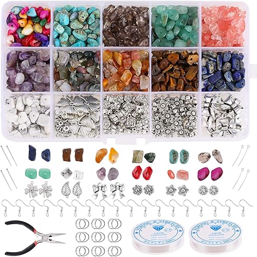 Hifot kit Fabrication Bijoux Atelier creatif Adulte 900 Pièces, Naturelle Perles Pierre Breloques Bricolage Collier Bracelet Boucle d'oreille DIY kit Bijoux Faisant Créatif Femme