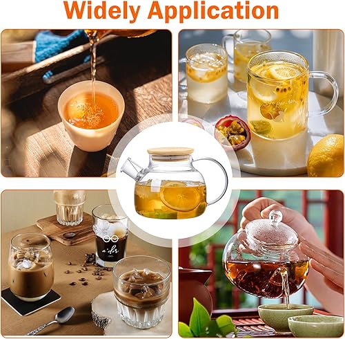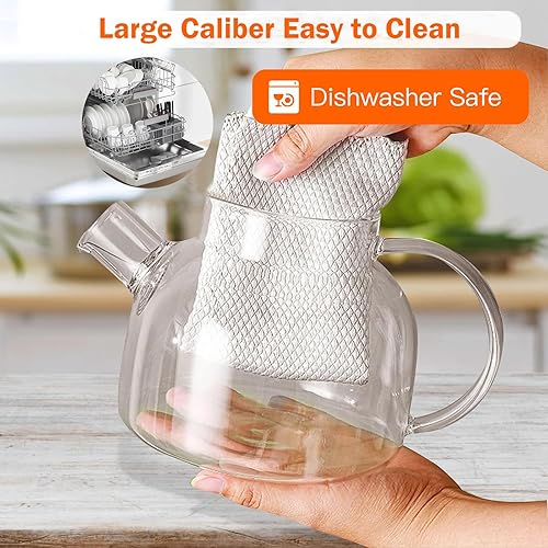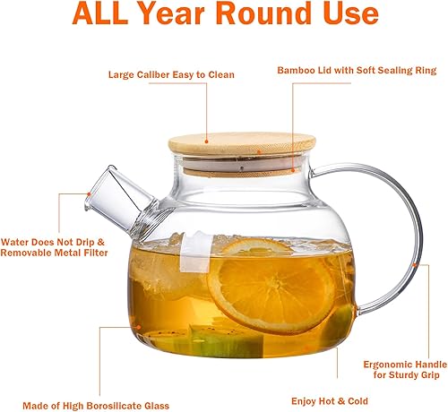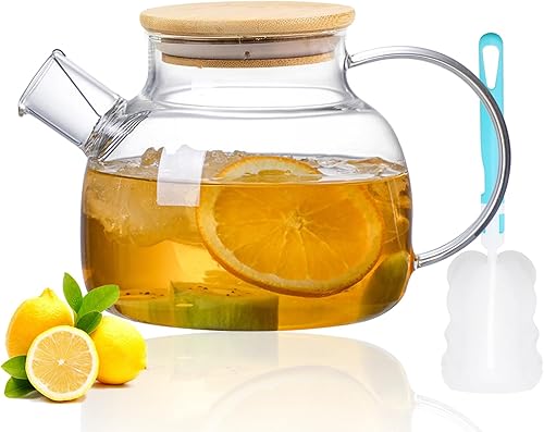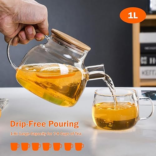 Theiere Verre avec Filtre,Théière en Verre,Theiere avec Infuseur,Theiere en Verre avec Couvercle en Bambou,Design Moderne,Lavable au Lave-Vaisselle Pour les Boissons Chaudes Froides(1000ml)