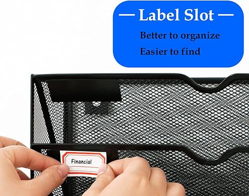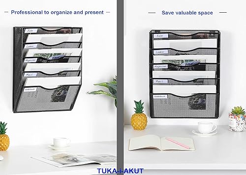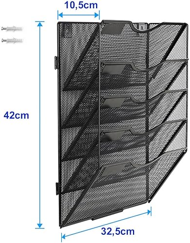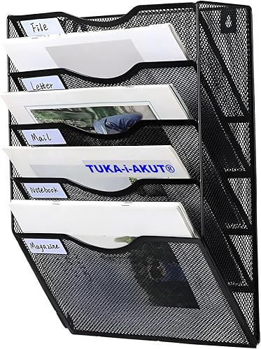 TUKA-i-AKUT 5 Niveaux Porte Revues Mural A4 Paysage, Maille Métal Support de Fichiers Suspendu avec Motif d'étiquette, Organisateur Suspendu Magazines Brochures Documents Lettres Noir TKD8660-5F