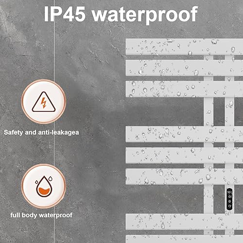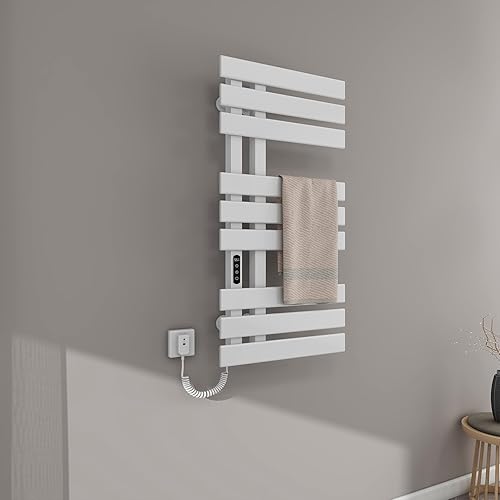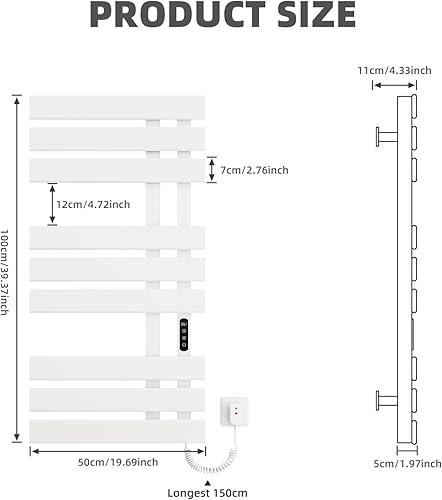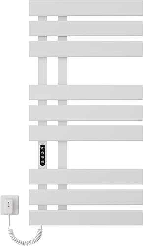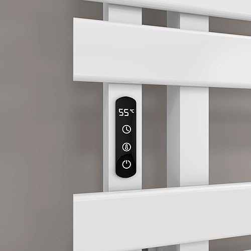 Seche Serviette Electrique, 350W, 500×1000mm, Porte-serviettes électrique, Chauffe-serviettes Intelligent à Température Constante, Seche Serviette Electrique Blanc, Température Réglable-White Left