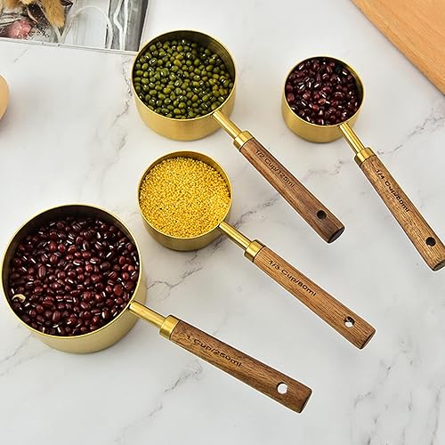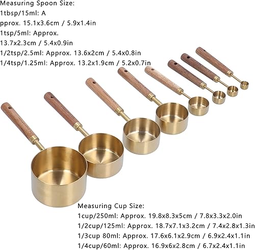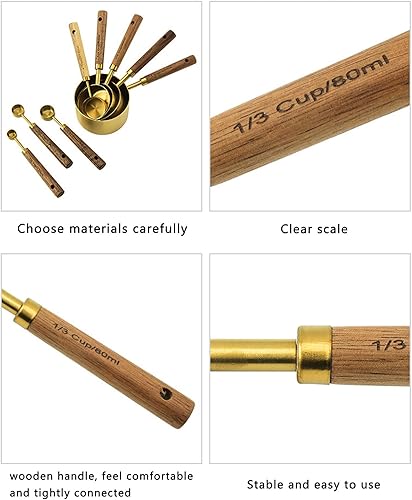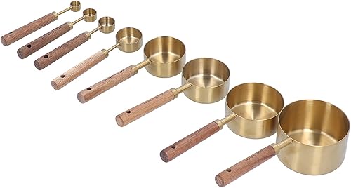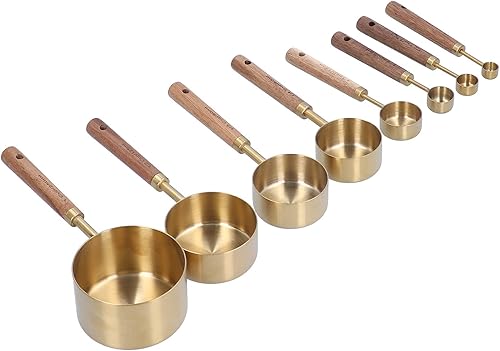 Lot de 8 cuillères doseuses en acier inoxydable, cuillère doseuse avec manche longue en bois, tasse ronde pour la cuisson au four