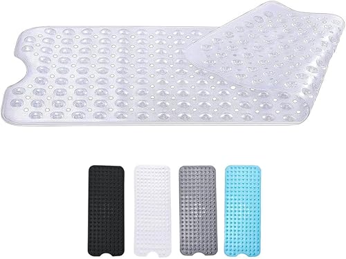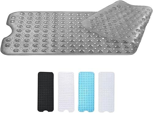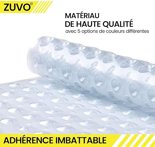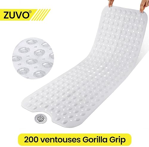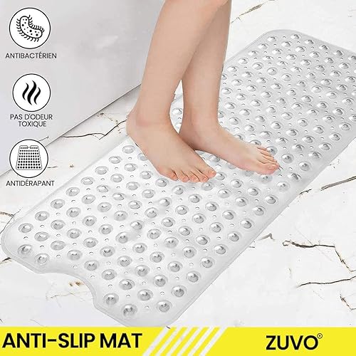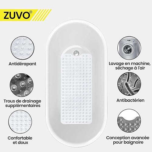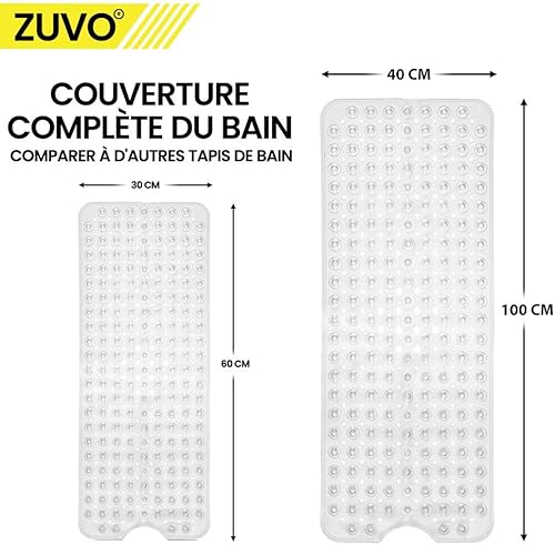 Zuvo Tapis de Bain Antidérapant | Extra Long 100 x 40 cm | Ventouses Puissantes & Anti-Moisissure | Lavable en Machine | Sécurisé pour Enfants & Seniors | Gris